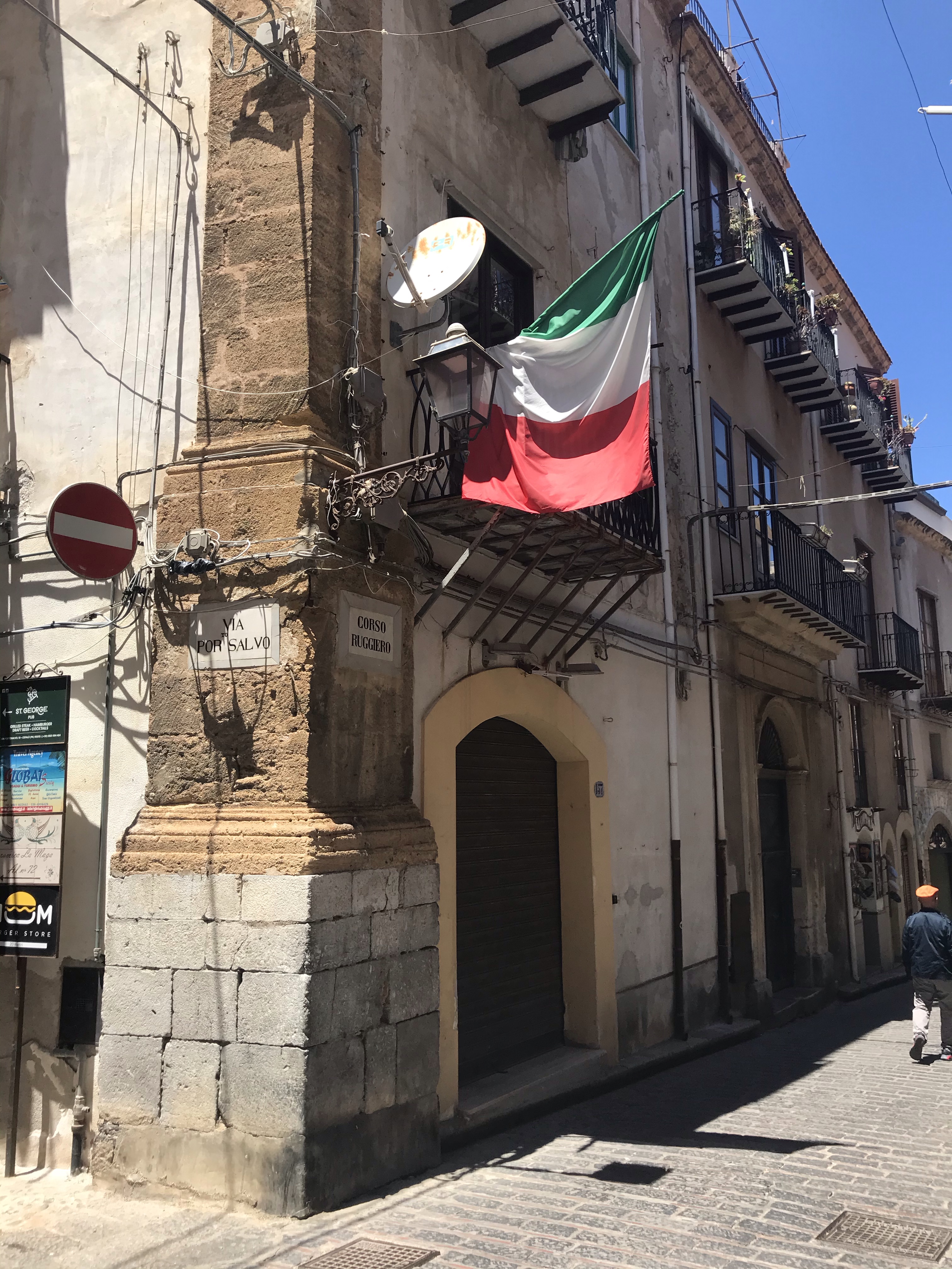 Again, I was able to find a place to park and walk into the old medieval part of the city, which like every other Sicilian town I’ve encountered, is lovely. Mostly, I only wanted to see the castle. Unfortunately, it was closed. But as I turned the corner and walked under the arch, my heart heavy and my mind preoccupied with the demonstrations happening all across America, my spirit lifted when I saw this.