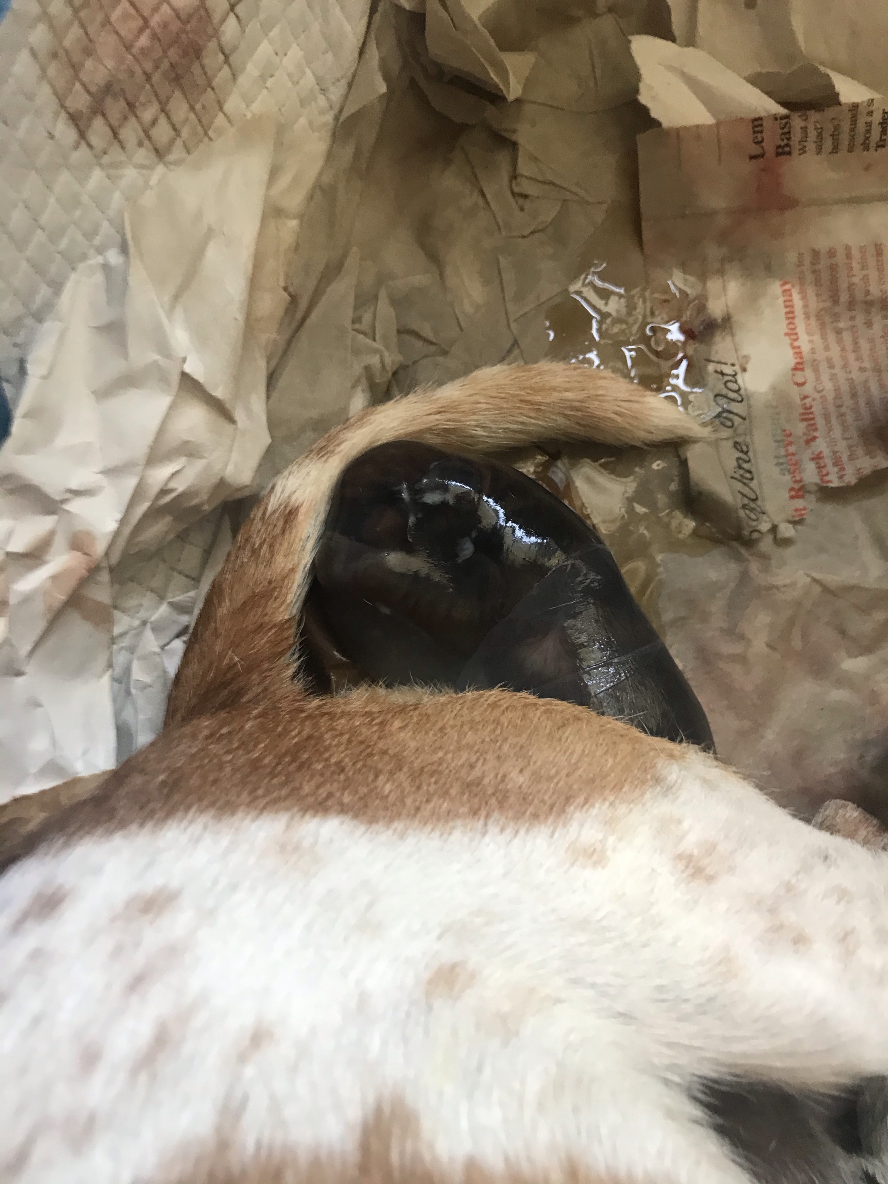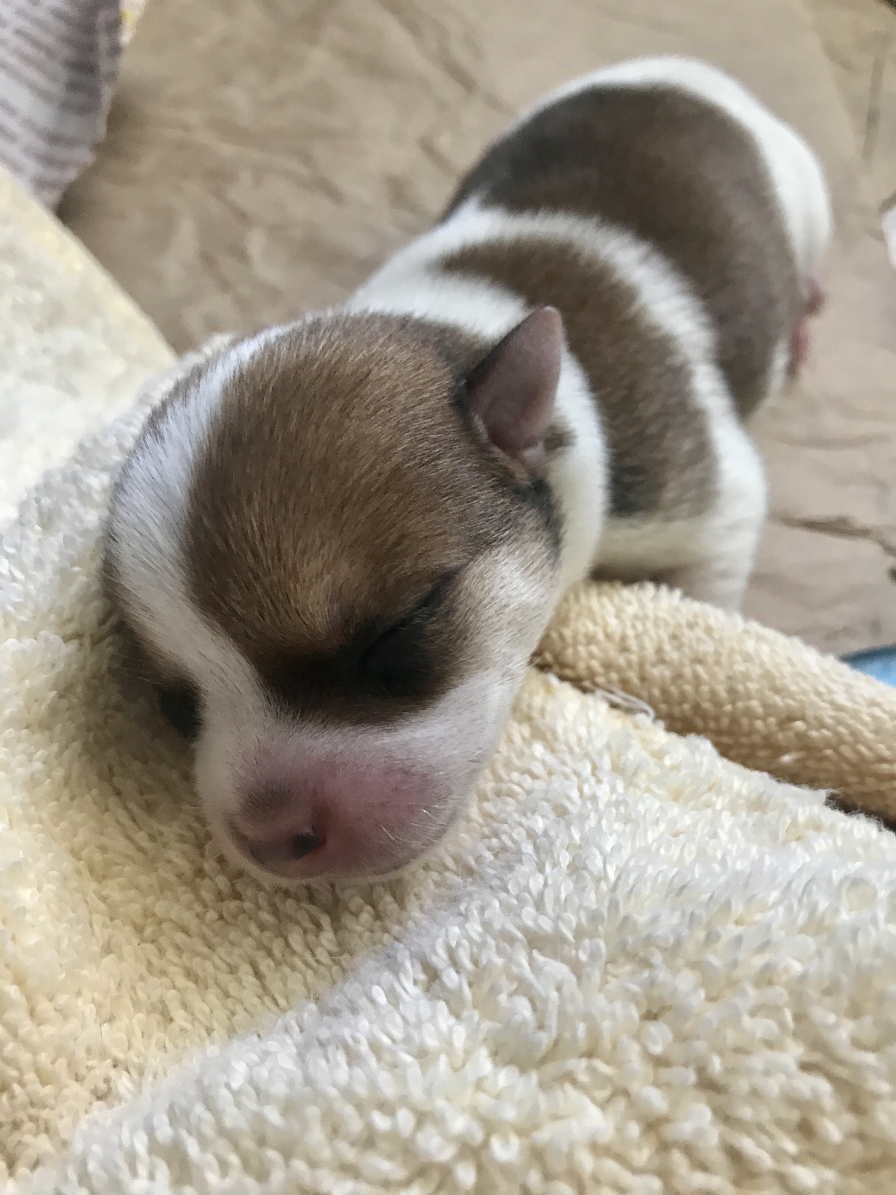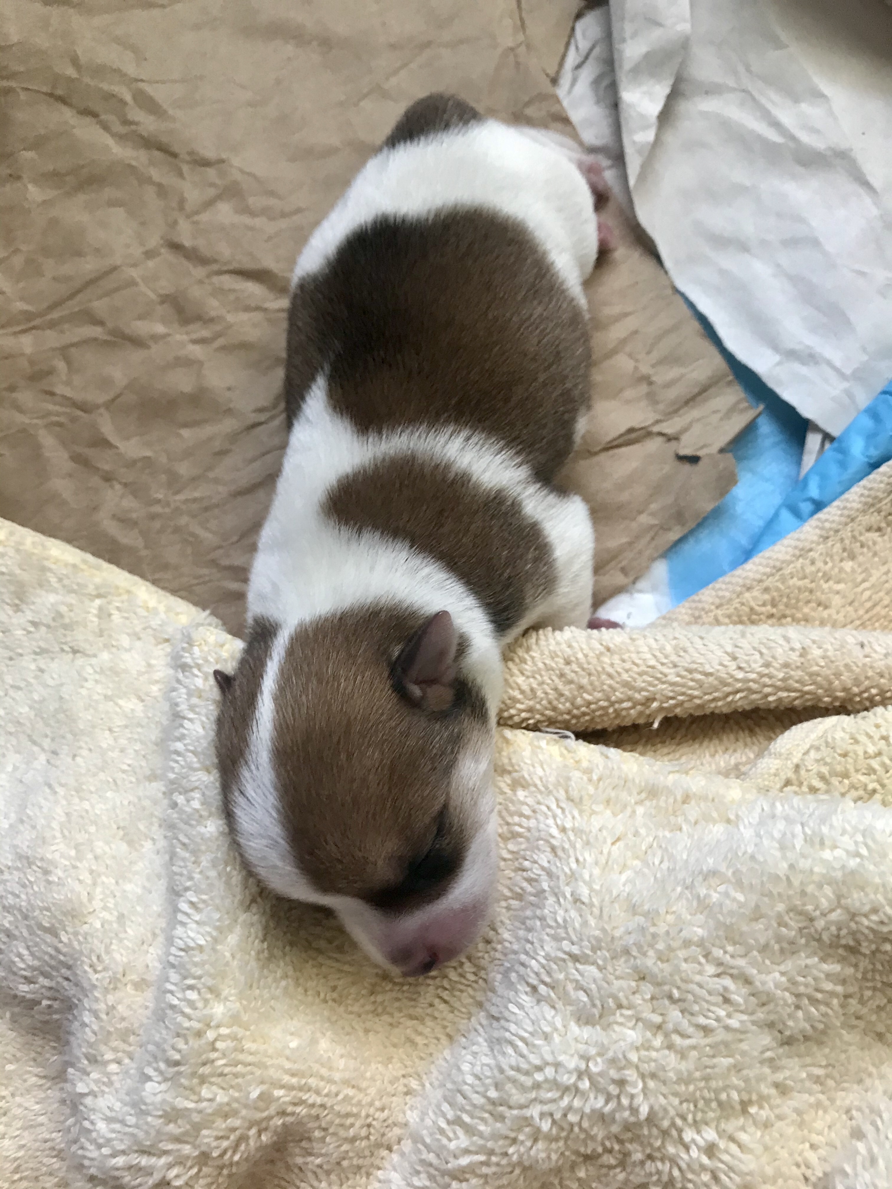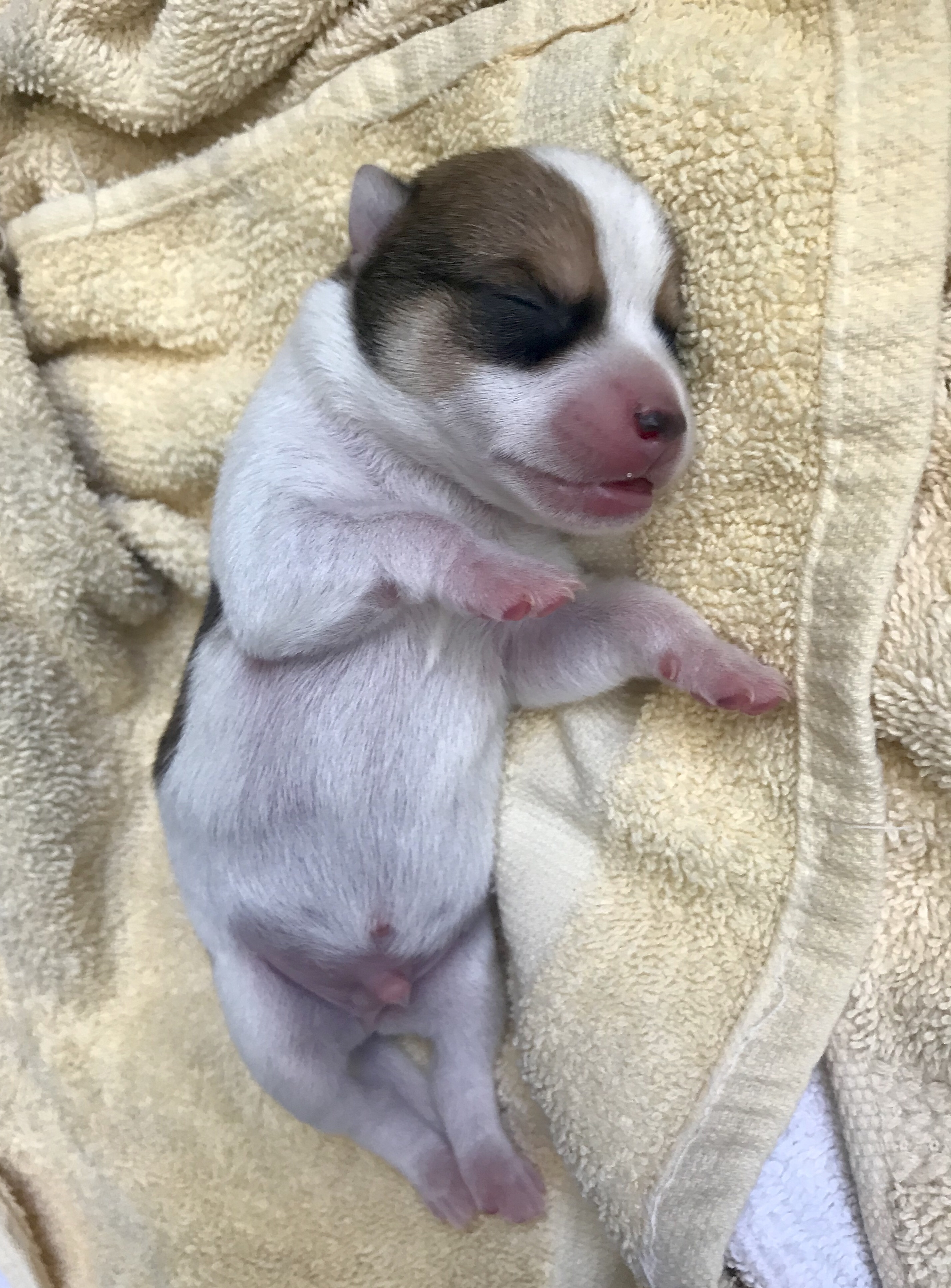The first three puppies were born quite quickly. One after the other. A little space after the first, which was good considering that birth was rough (see Doggie Doula), but then the next two popped out easily. All three in about 25 minutes. All five in under an hour.