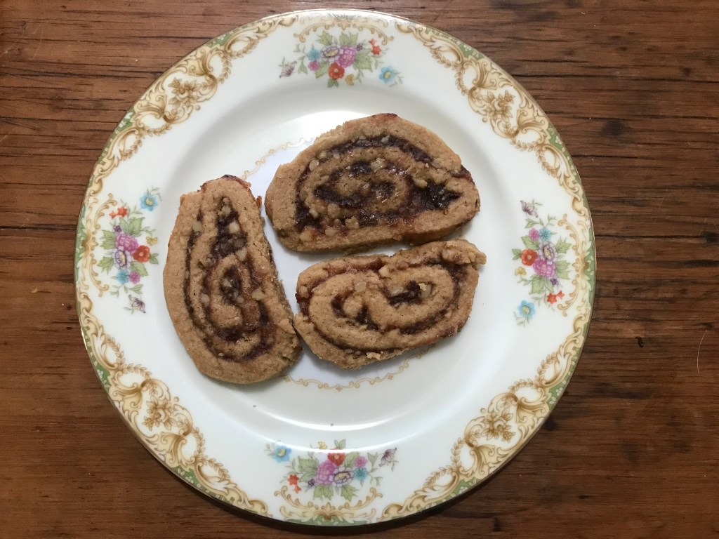 These cookies brought me home. Back to memories long buried. Each bite was more than a delight. Each bite was a homecoming. I could picture myself forty years ago chopping the dates and walnuts by hand. Spreading the mixture over the dough then rolling it into a log. Chilling the log in the fridge, then carefully slicing it to reveal pinwheels. Gently transferring them onto cookie sheets and baking them. Remembering all these steps and knowing Ed went through such effort touches me deeply. These cookies, more than an edible treat, make me feel connected to my grandmother again, and to the young woman I use to be.