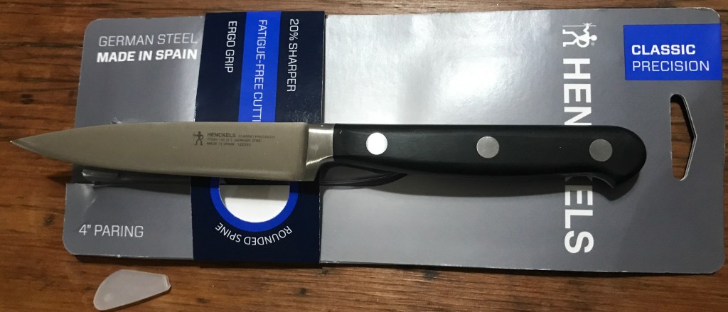 And so this friend, from whom I would never expect a gift, and long after I shared my missing knife woe, gave me a new Henckels 4” paring knife.