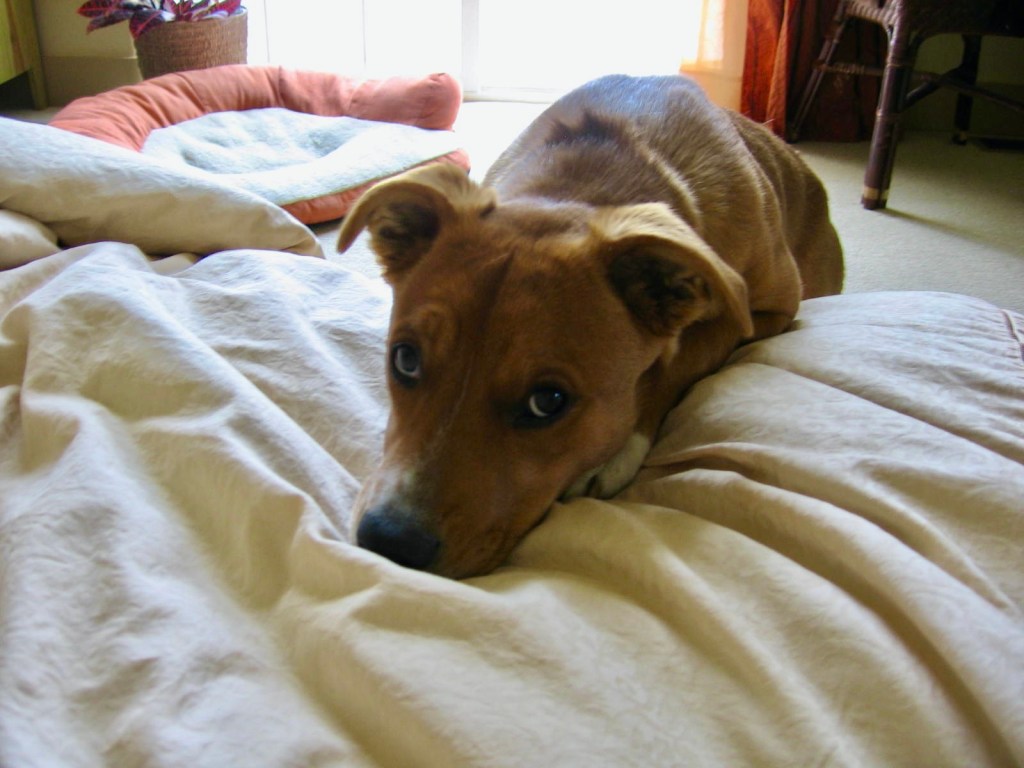My firstborn. I would whisper this to her, close to her face, as I cuddled her best as she would allow. She wasn’t my first dog, but in a house with Leo, I gave her this honor. She was special. They might be the same age, but she had seniority. Even if she did prefer to squeeze into Leo’s bed.