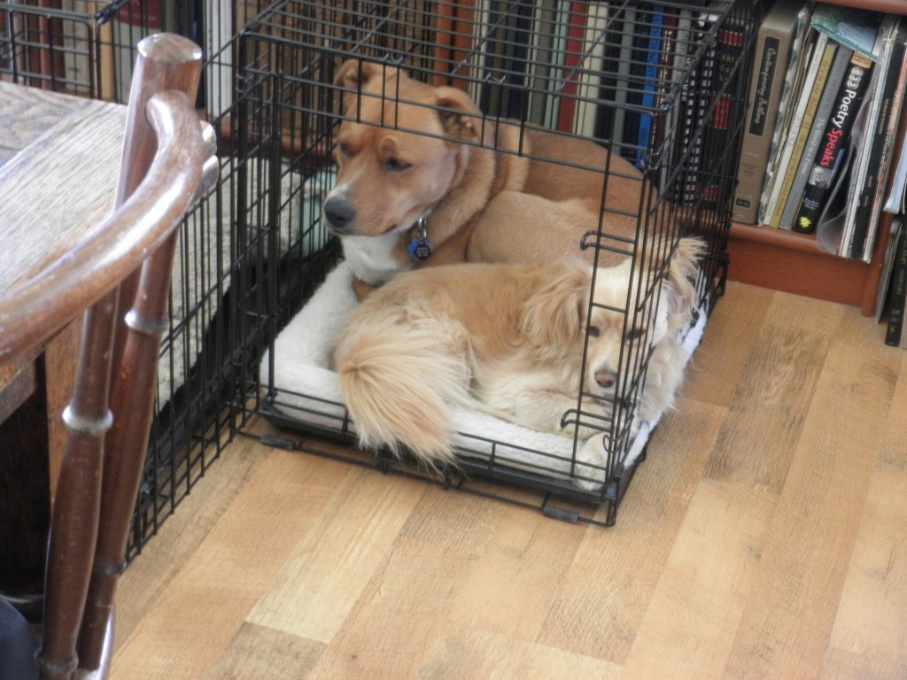 So it wasn’t long before I realized she needed a companion and I had a plan. I would take a week off work and we would drive to Omaha, where there was a small dog rescue of mostly females bred in puppy mills. This time around, I wanted a small dog. An older, female dog. Motherly. Athena could pick her out. It was a perfect plan. But then the local shelter called and said they had a dog for me. No, it was not female and, no, it was not older. But it was small and cute and cream-colored. We visited and that was that. They were instantly best friends.