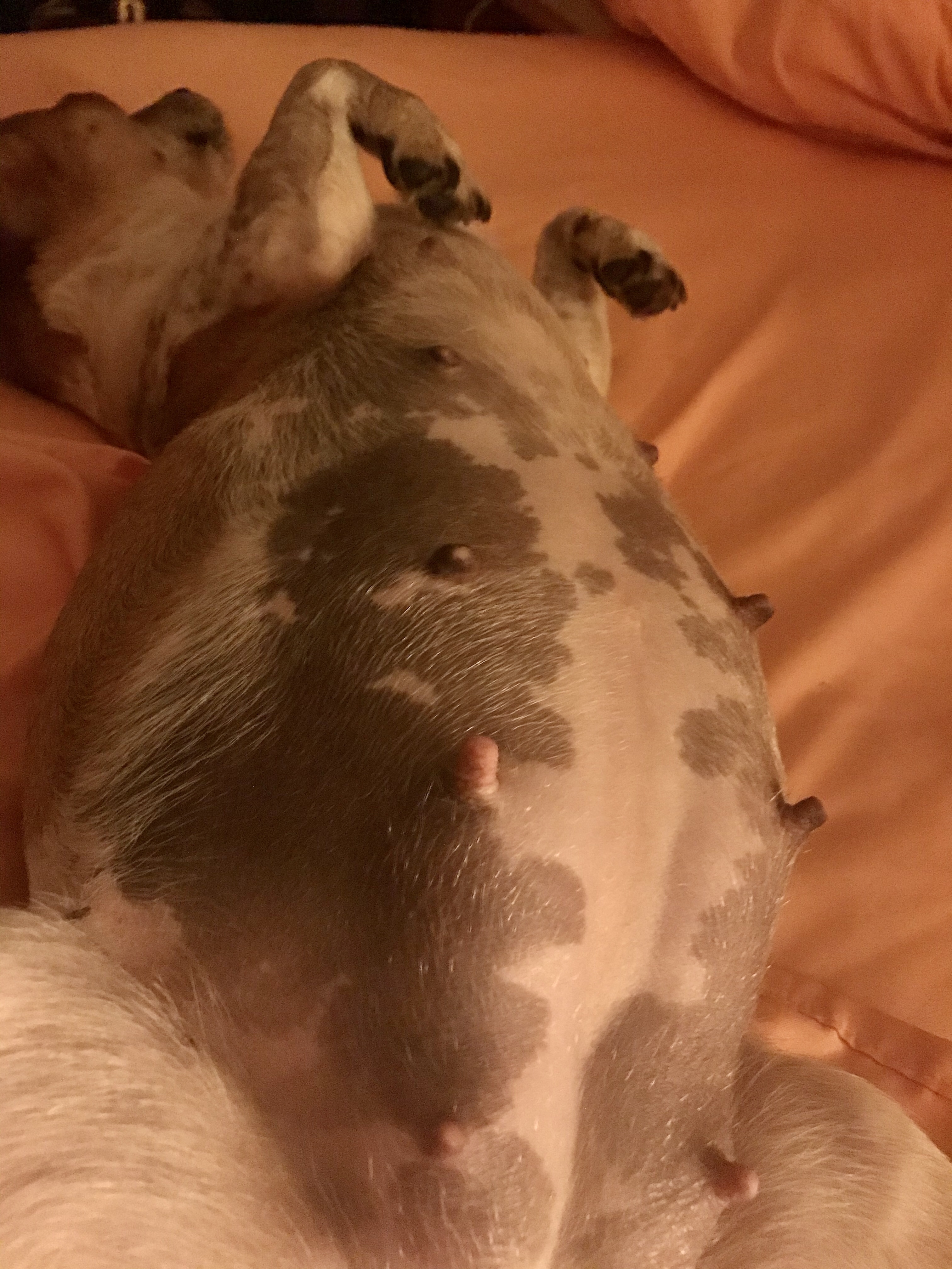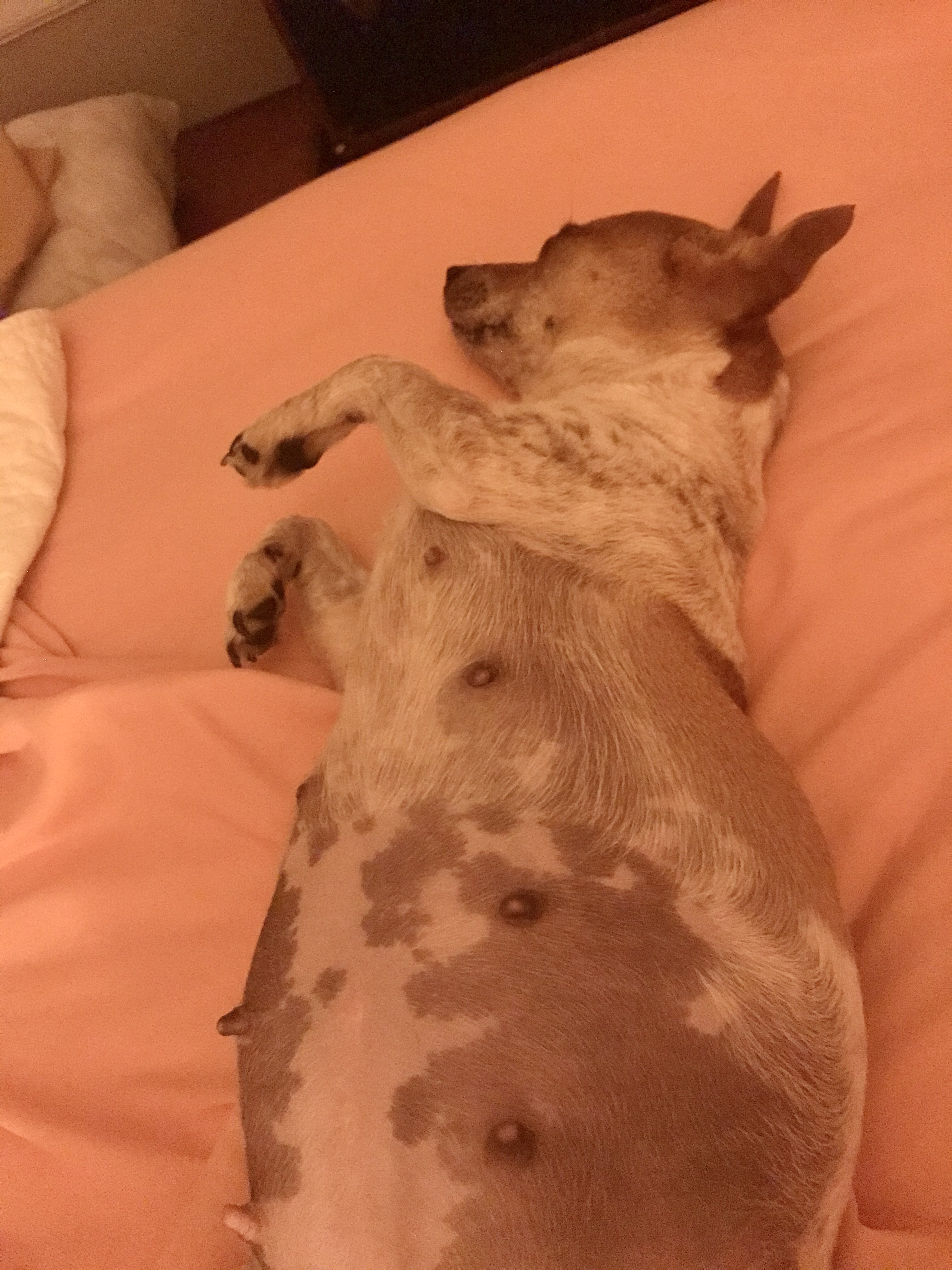 Mazie is pregnant. I knew that when I got her, but you couldn’t really tell. Now her belly is big and you can see the puppies moving. Any day now, any hour, she’s about to give birth. She’s creating something new. There’s a metaphor there for me too. Magic is afoot. New life beginning. At the moment, still mostly in hiding. But it’s coming. So we’re preparing, as best as we can, and we’re napping. Napping a lot. Birthing is hard work. Whatever comes will be demanding. Exhausting. And exhilarating.