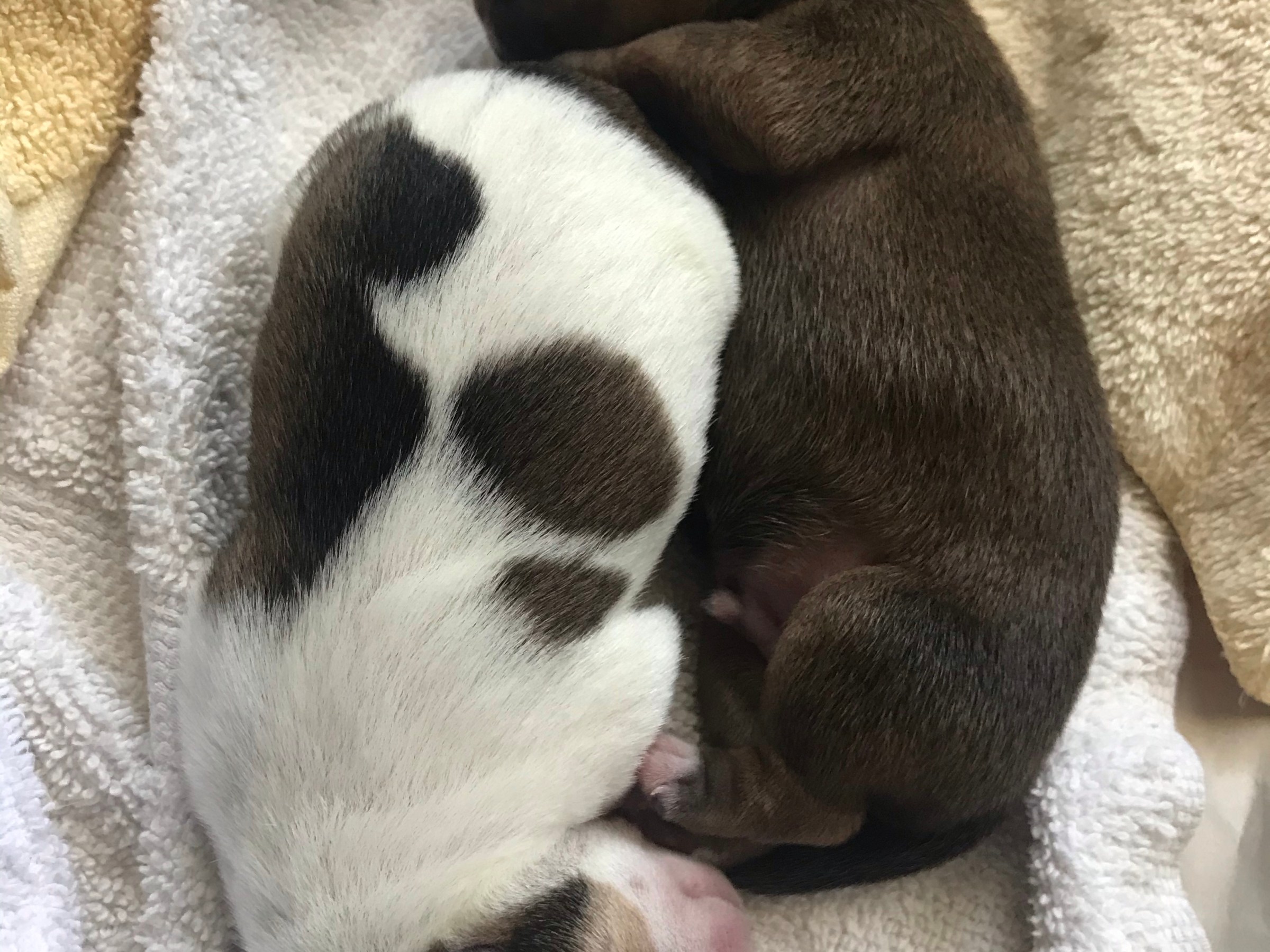 Mazie, my 11pound Terrier mix, had 5 puppies during Covid19 quarantine. Here are two of the girls.